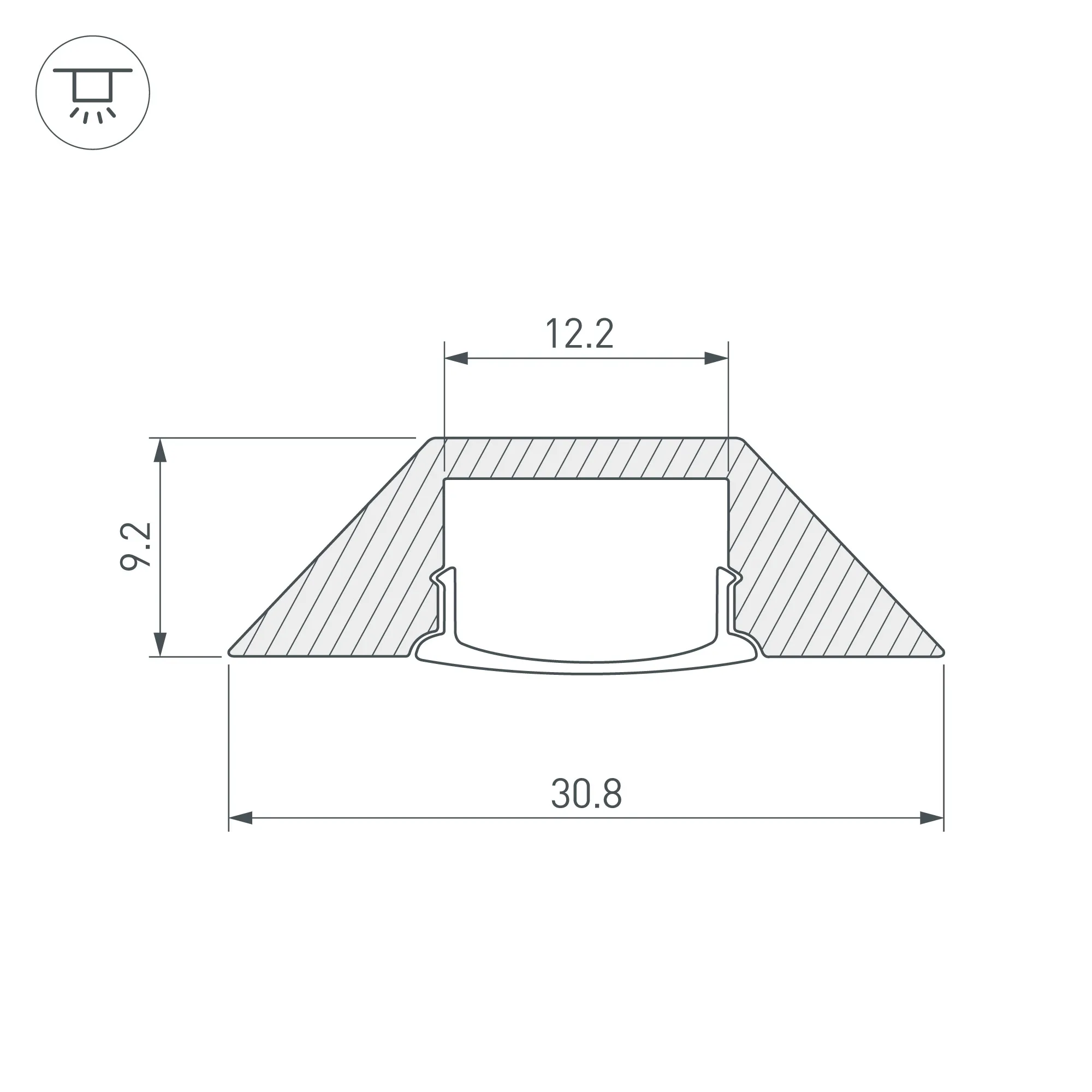 Поставка под заказ от 1 компл. Комплект с экраном. Алюминиевый анодированный профиль для светодиодных лент и линеек. Габаритные размеры (L×W×H): 2000x30,8x9,2 мм. Ширина площадки для ленты 12,2 мм. Аксессуары приобретаются отдельно.