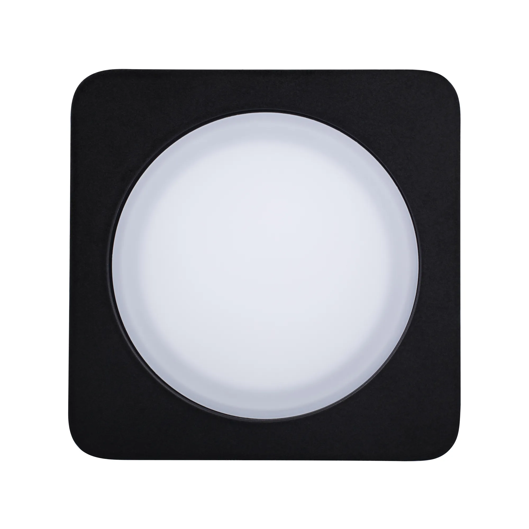 Квадратный светильник с контурным свечением. Корпус IP44 черный + вставка поликарбонат PC. Цвет ДНЕВНОЙ 4000К, св.поток 325 лм, угол 120°+180°. Питание 110-240VAC (драйвер в к-те 300mA 11-25V), мощность 5Вт. Размеры 80х80х40 мм, установка в отв.65х65 мм, высота мин.40 мм.