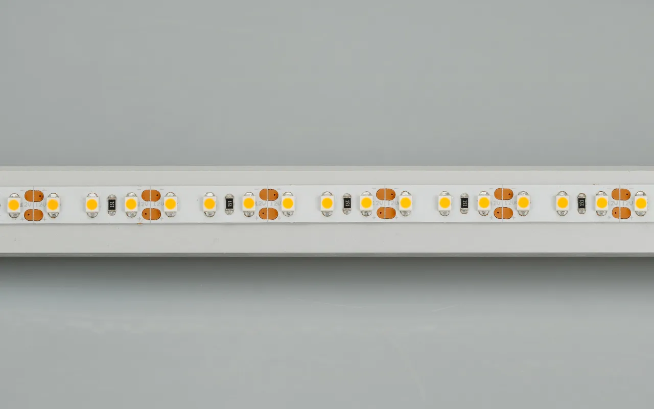 Гибкая лента LUX, светодиоды 2Х smd 3528, 120шт/м (600шт на 5м), белая плата 8мм, скотч 3М. Цвет ТЕПЛЫЙ БЕЛЫЙ 2600-2800K. Питание 12В, мощность 9,6 Вт/м (48 Вт на 5м), угол 120°. Размеры 5000х8х1,8мм. Мин.отрезок 25мм (3 LED). Цена за 1м.