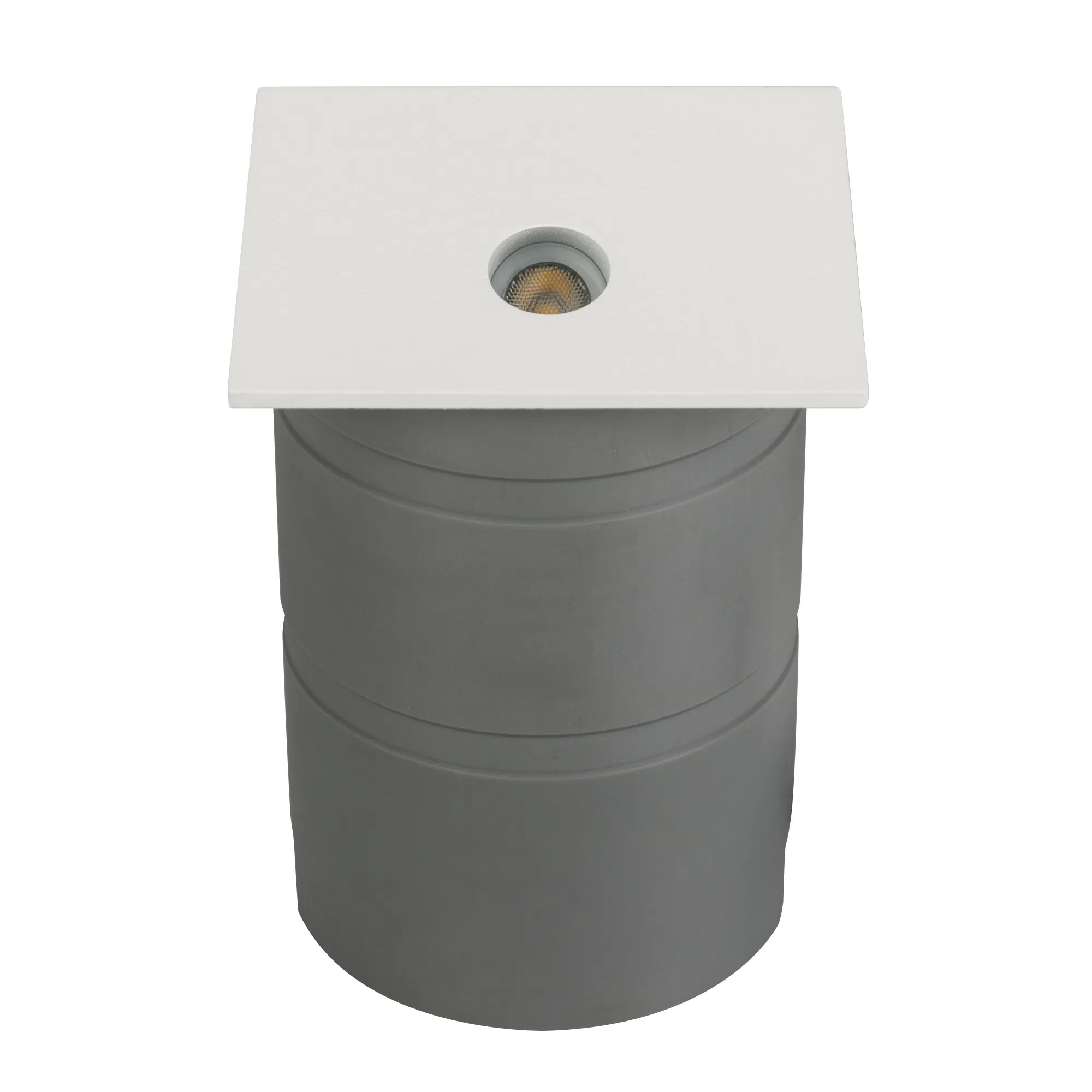 Светодиодный встраиваемый квадратный светильник для стен, лестниц, 3Вт. Цвет ТЕПЛЫЙ 3000К, световой поток 120лм, угол 30°, CRI>80. Влагозащищенный корпус IP65, белый алюминий. Питание AC230V, мощность 3Вт. Размеры LxWxH 70x70x97мм (закладная часть Ø62x95мм).