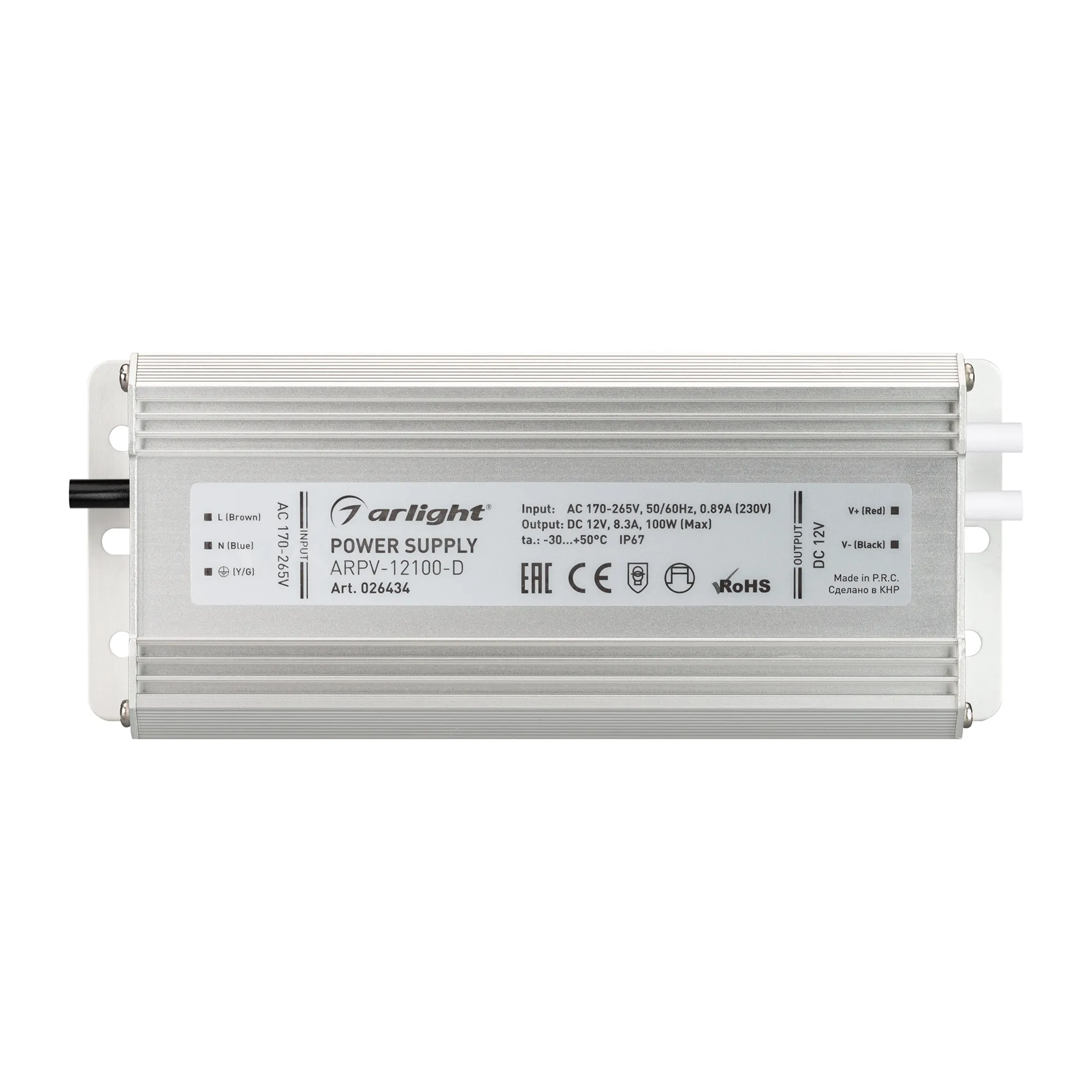 В магазине Arled Market Вы можете купить "Блок питания ARPV-12100-D (12V, 8.3A, 100W) (Arlight, IP67 Металл, 3 года)"