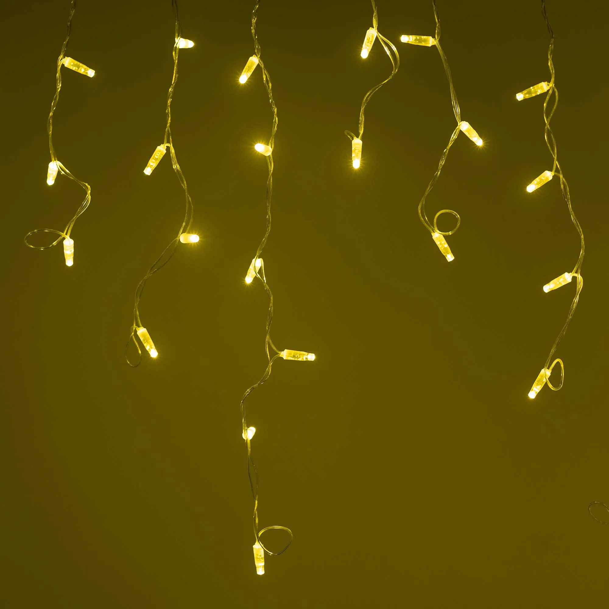 Светодиодная бахрома Classic. Размер 2400x600 мм (длина 2400 мм, по длине 24 нити высотой 200/600 мм). Количество светодиодов 88 шт размером 7 мм. Цвет свечения ЗОЛОТОЙ, эффект постоянного свечения с резким световым рисунком (прозрачная вогнутая линза). Провод прозрачный, ПВХ. Питание 230 В, Мощность 6 Вт, защита IP65, применение на улице под навесом. Аксессуары для подключения приобретаются отдельно.