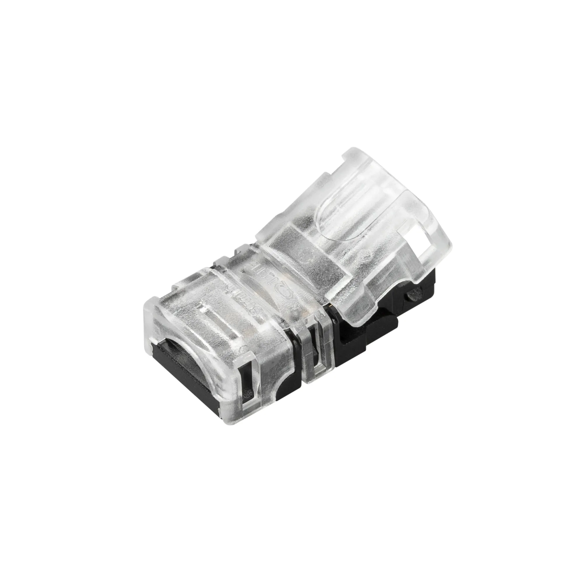 Одиночный коннектор (без провода) для подключения питания к одноцветным герметичным (IP54/IP65) лентам SE (заливка силиконом сверху) шириной 8 мм. Требуется очистка провода питания (0,34-0,75 мм2) от изоляции. Материал - пластик. Максимальный допустимый ток 3 А, напряжение 3-24 В. Размер коннектора 24.27x12.6x7.66мм. Цена за 1 шт.