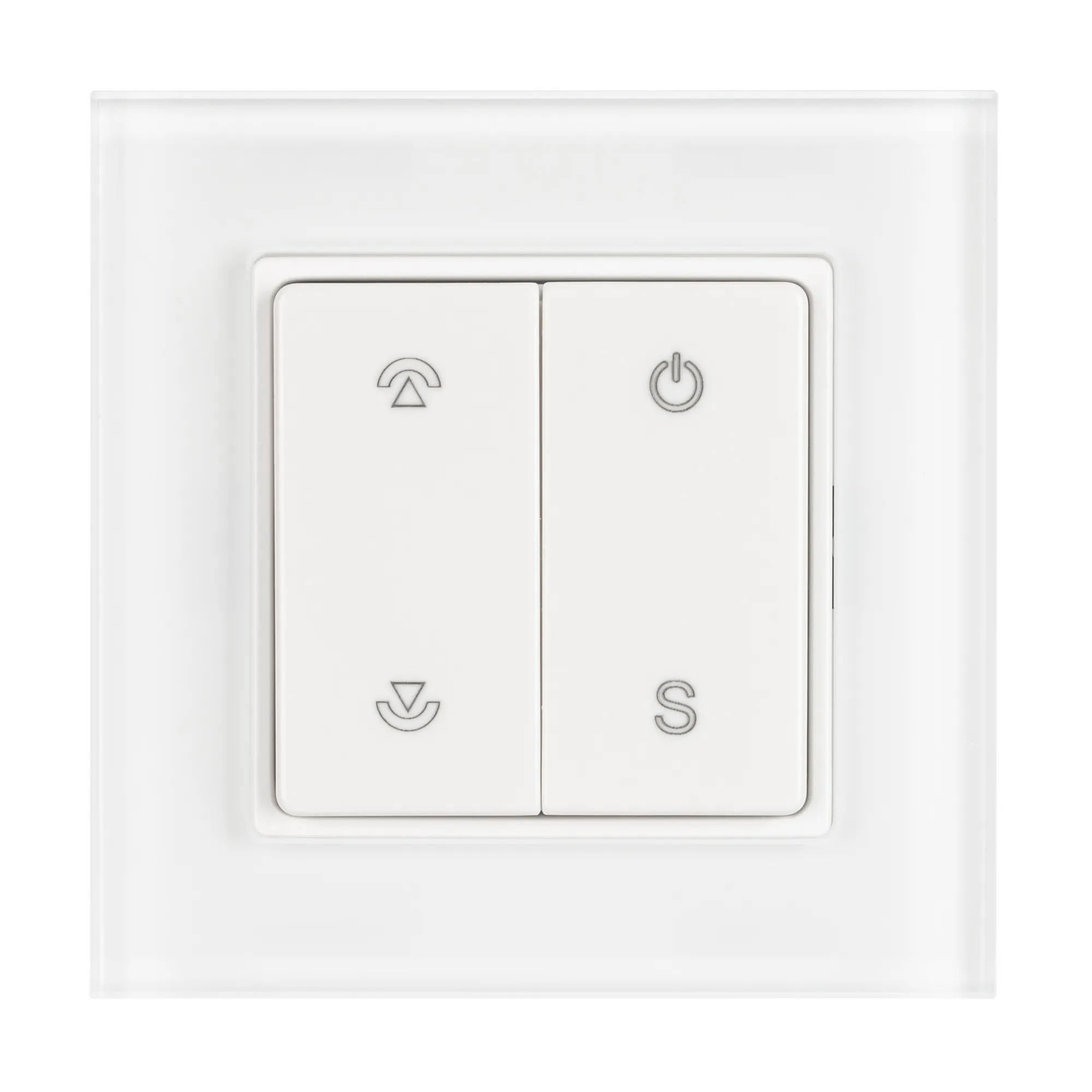 Накладная кнопочная панель 2.4 ГГц, цвет белый. Материал - стекло. Для управления одноцветными источниками света, 1 зона управления. Питание/рабочее напряжение 3VDC от батарейки CR2032. Габариты 86х86х15 мм. Совместима с диммерами SMART.
