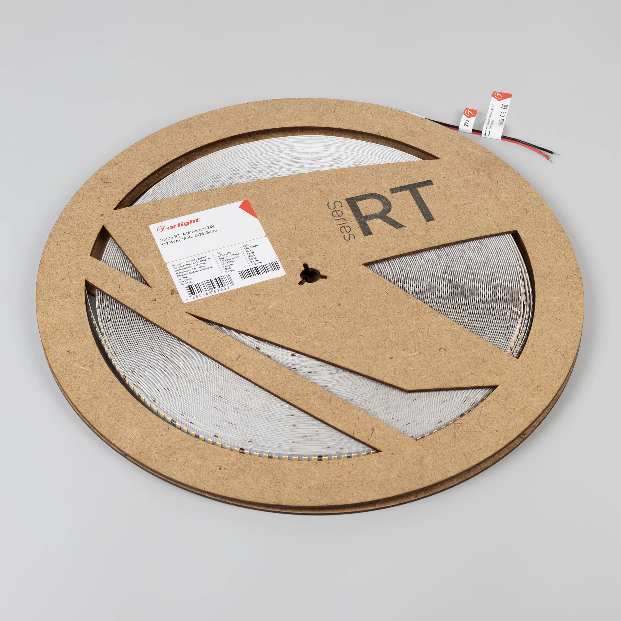 Светодиодная высокоэффективная лента RT серии A160 (монтажная бобина 50 м). Светодиоды SMD 2835, 160 шт/м, белая плата шириной 8 мм, скотч 3M. Цвет БЕЛЫЙ 6000K, высокая световая эффективность 150 лм/Вт, индекс цветопередачи CRI>85, угол 120°. Питание 24 В, мощность 12 Вт/м (60 Вт на 5 м). Размеры 5000x8x1.5 мм. Мин. отрезок 50 мм, 8 светодиодов. Цена за 1 м. Разрезать перед подключением. Макс. длина подключения 5 м.