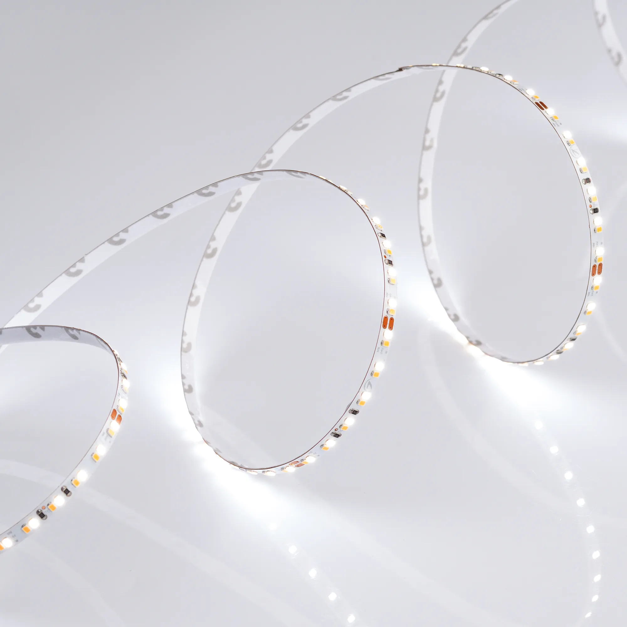 Биполярная узкая светодиодная лента MICROLED серии M240 с изменяемым цветом свечения. Светодиоды SMD 2216, 240 шт/м, белая плата шириной 4.5 мм, скотч 3M. Цвет БЕЛЫЙ 6000K + ТЕПЛЫЙ 2700K, индекс цветопередачи CRI>90, угол 120°. Питание 24 В, мощность 9.6 Вт/м (48 Вт на 5 м). Размеры 5000x4.5x1.2 мм. Мин. отрезок 50 мм, 12 светодиодов. Цена за 1 м.