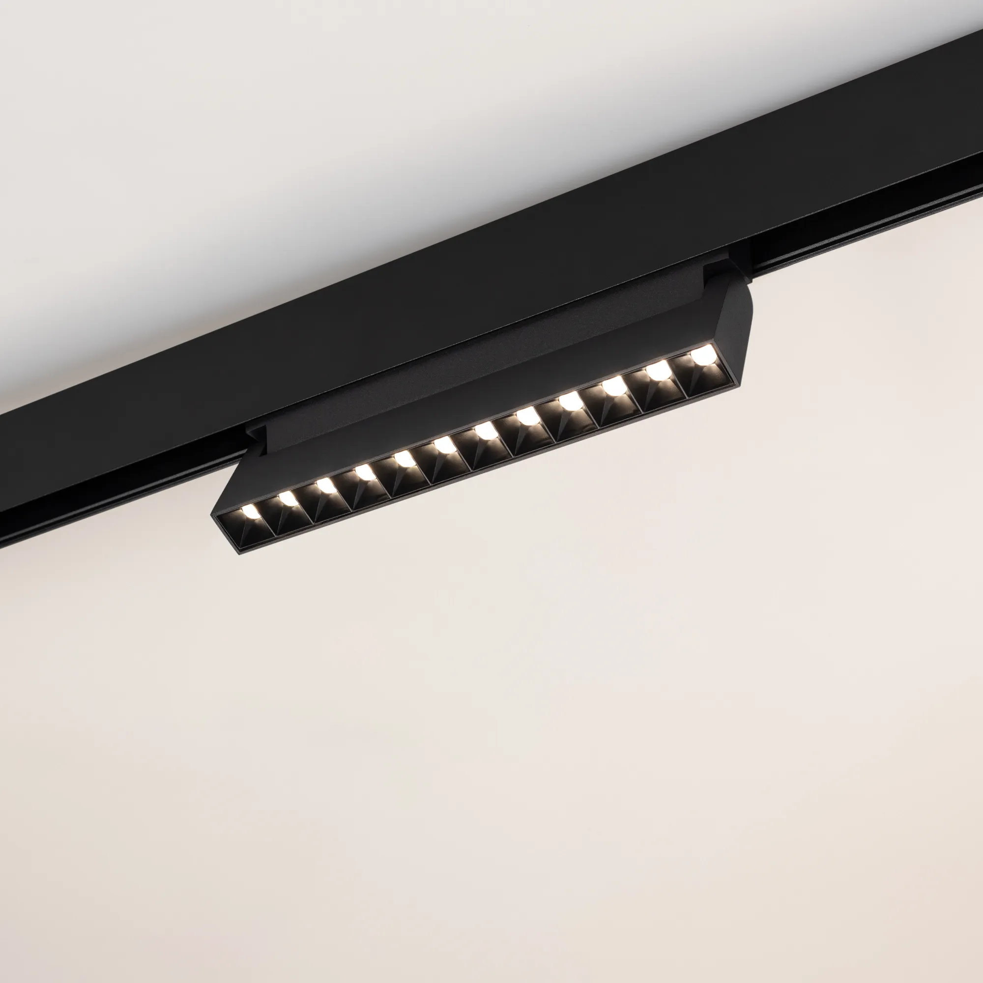 Светильник для магнитных треков MAG-ORIENT шириной 26 мм с управлением DALI. Мощность 12 Вт, св. поток 520 лм, 43 лм/Вт, дневной 4000 K, CRI>90, угол 30°, напряжение питания 48 В. Черный прямоугольный корпус из металл, экран поликарбонат, степень защиты IP20. Размер: длина 231 мм, ширина 23 мм, высота 107 мм. Монтаж на трек MAG-ORIENT. Пульсация <1%.