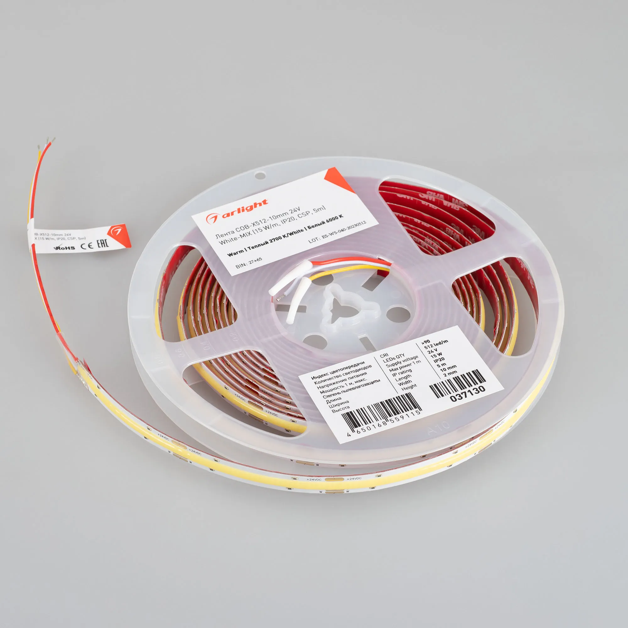 Лента светодиодная COB-X512-10mm 24V White-MIX (15 W/m, IP20, CSP, 5m) (Arlight, 5 лет)