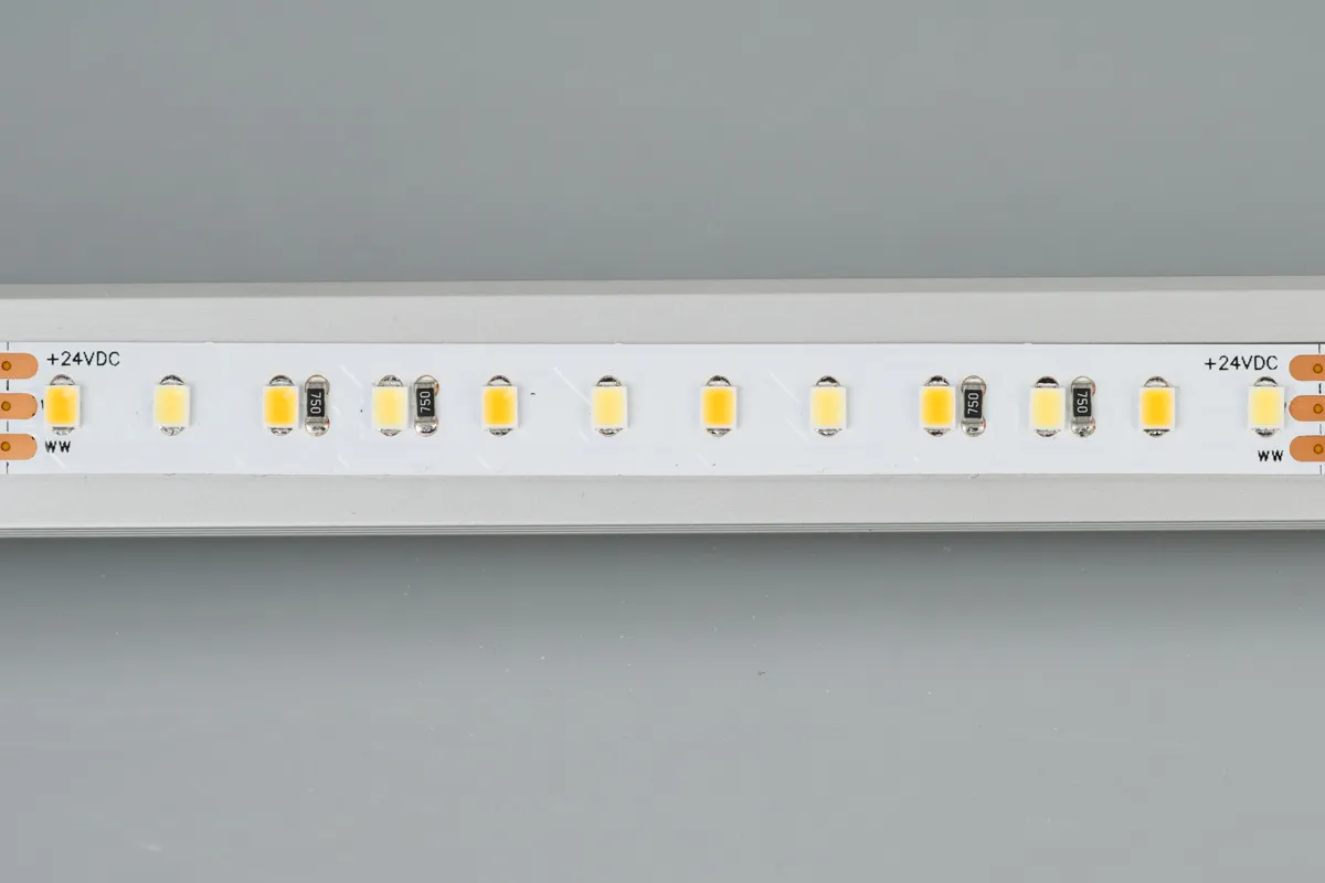 2-х канальная лента LUX с изменяемой цв.температурой, светодиоды smd 2835, 120шт/м (600шт на 5м), белая плата 10мм, скотч 3М. Два цвета БЕЛЫЙ 6500K + ТЁПЛЫЙ 2700K. Угол 120°, цветопередача CRI>94. Питание 24V, мощность 23 Вт/м (115 Вт на 5м). Размеры 5000х10х1,8мм. Мин.отрезок 100мм, 12 светодиодов. Цена за 1м.