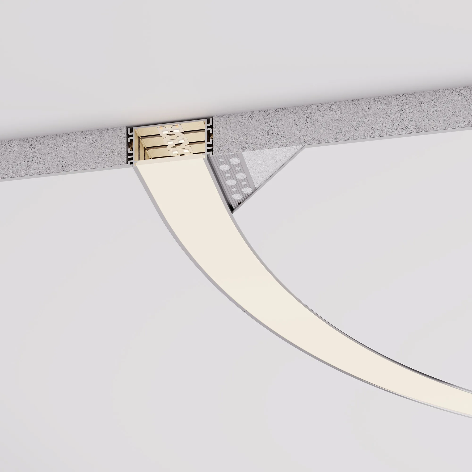 Алюминиевый встраиваемый гибкий профиль для светодиодных лент и линеек. Изгиб вправо/влево. Минимальный радиус изгиба 50 см. Габаритные размеры (L×W×H): 2000х98,6х27,3 мм. Ширина площадки для ленты 45,2 мм. Экраны, заглушки и другие аксессуары приобретаются отдельно. Цена за 1 метр.