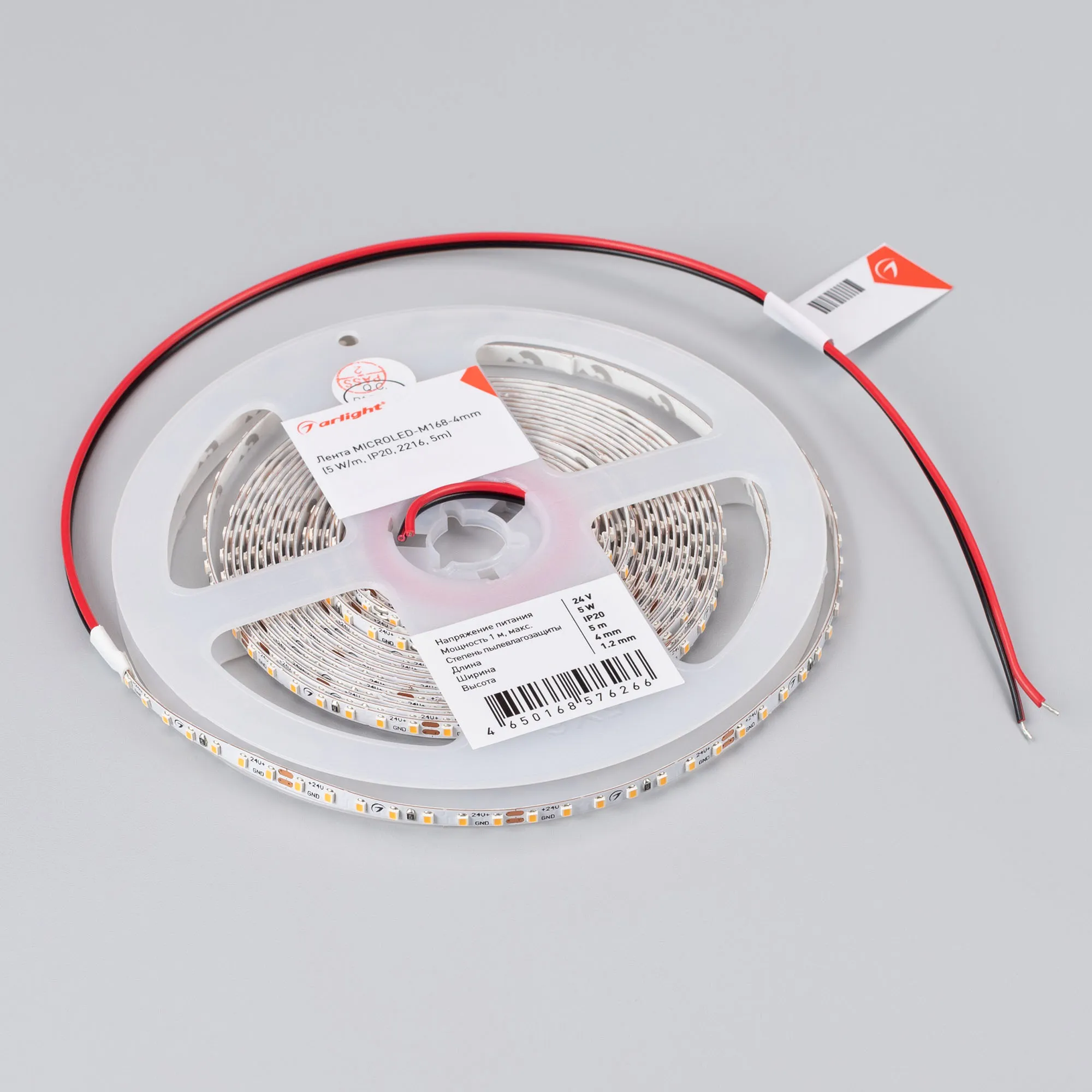 Лента светодиодная MICROLED-M168-4mm 24V Day4000 (5 W/m, IP20, 2216, 5m) (Arlight, узкая)