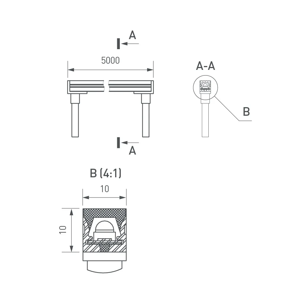 Грейзер THOR-TOP-B70-10x10mm 24V Warm1900 (15 W/m, IP67, 5m, wire x2) (Arlight, Вывод вниз, 3 года)