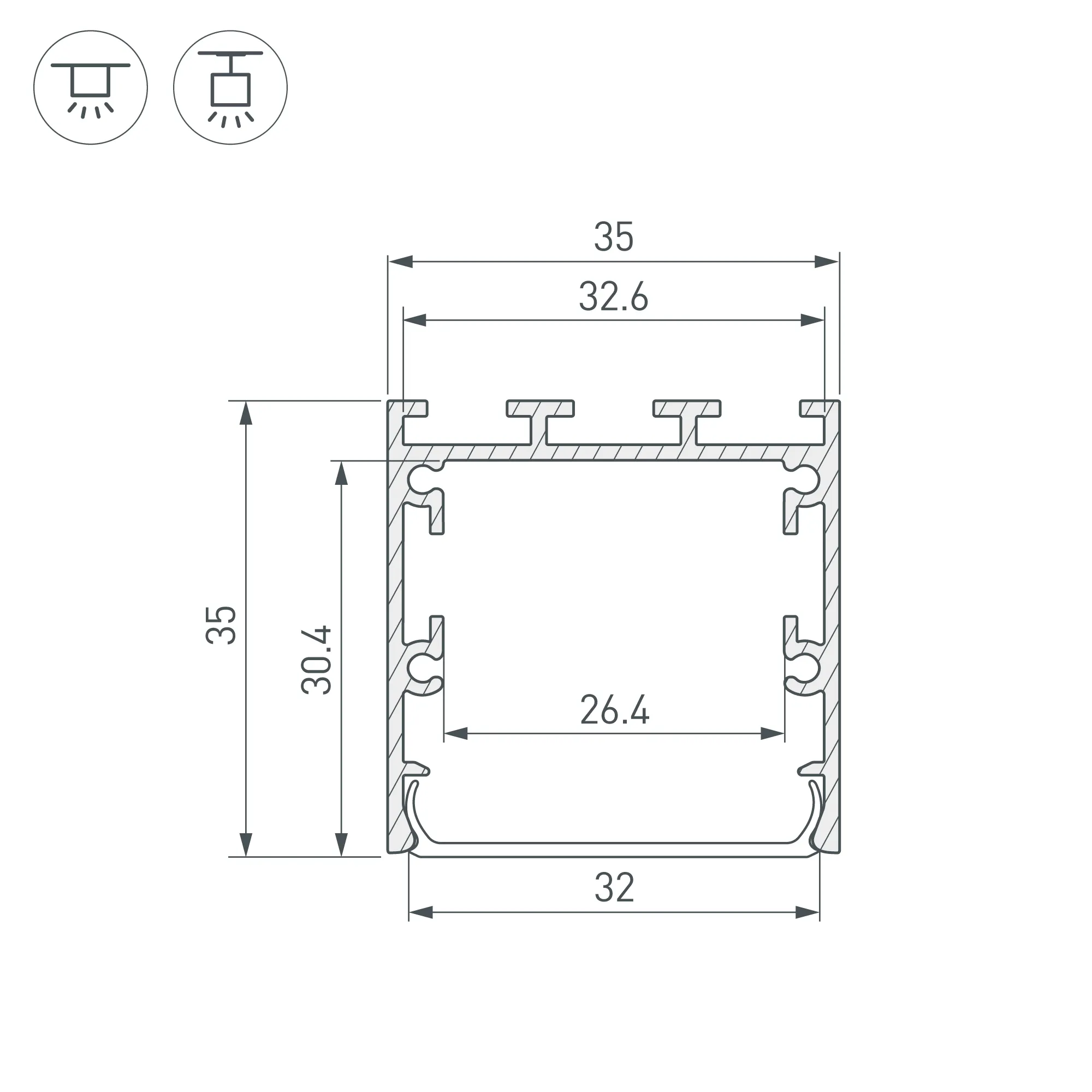 Алюминиевый профиль для светодиодных лент и линеек. Цвет - черный RAL9005 (порошковая окраска). Габаритные размеры (L×W×H): 3000x35x35 мм. Ширина площадки для ленты 26,4 мм. Экраны, заглушки и другие аксессуары приобретаются отдельно. Цена за 1 метр.