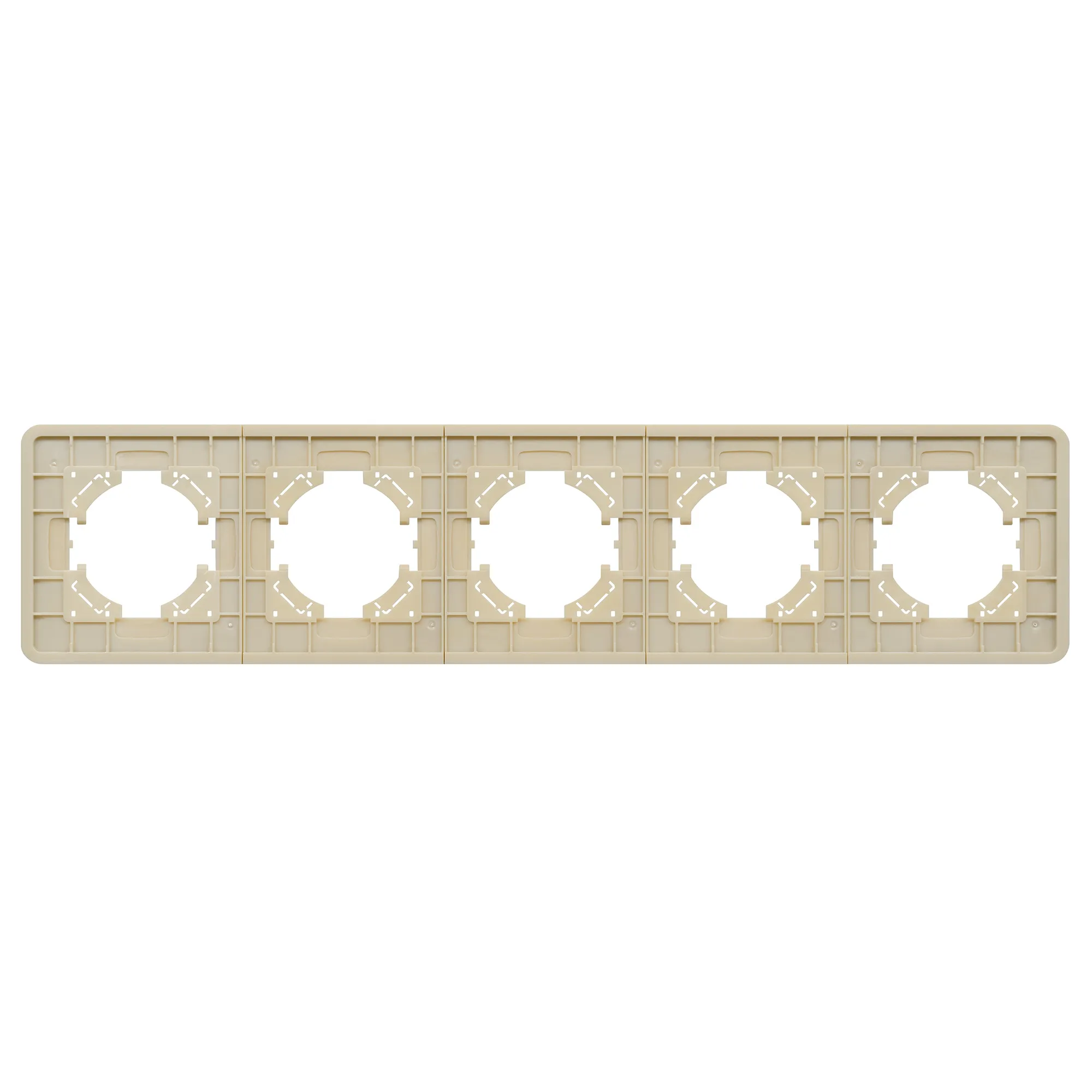 Рамка алюминиевая на 5 постов, под встраиваемый механизм. Цвет - золотой. Уровень герметичности IP20. Ориентация монтажа - горизонтальная (основным ориентиром служат посадочные выступы для накладки механизма).