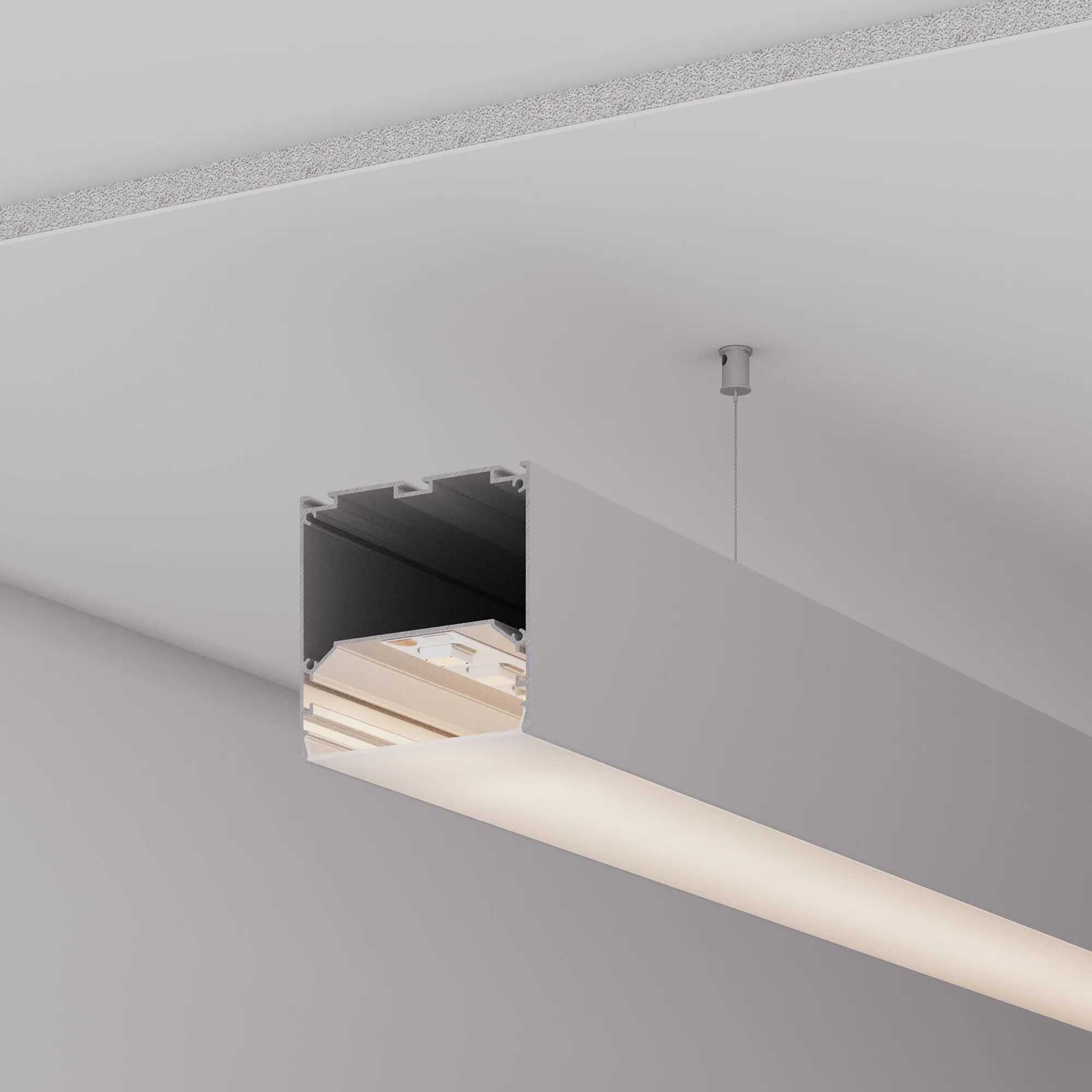Алюминиевый анодированный профиль для светодиодных лент и линеек. Габаритные размеры (L×W×H): 2500x75x75 мм. Ширина площадки для ленты 50 мм. Отсек для БП 72,5х33,3 мм. Экраны, заглушки и другие аксессуары приобретаются отдельно. Цена за 1 метр.