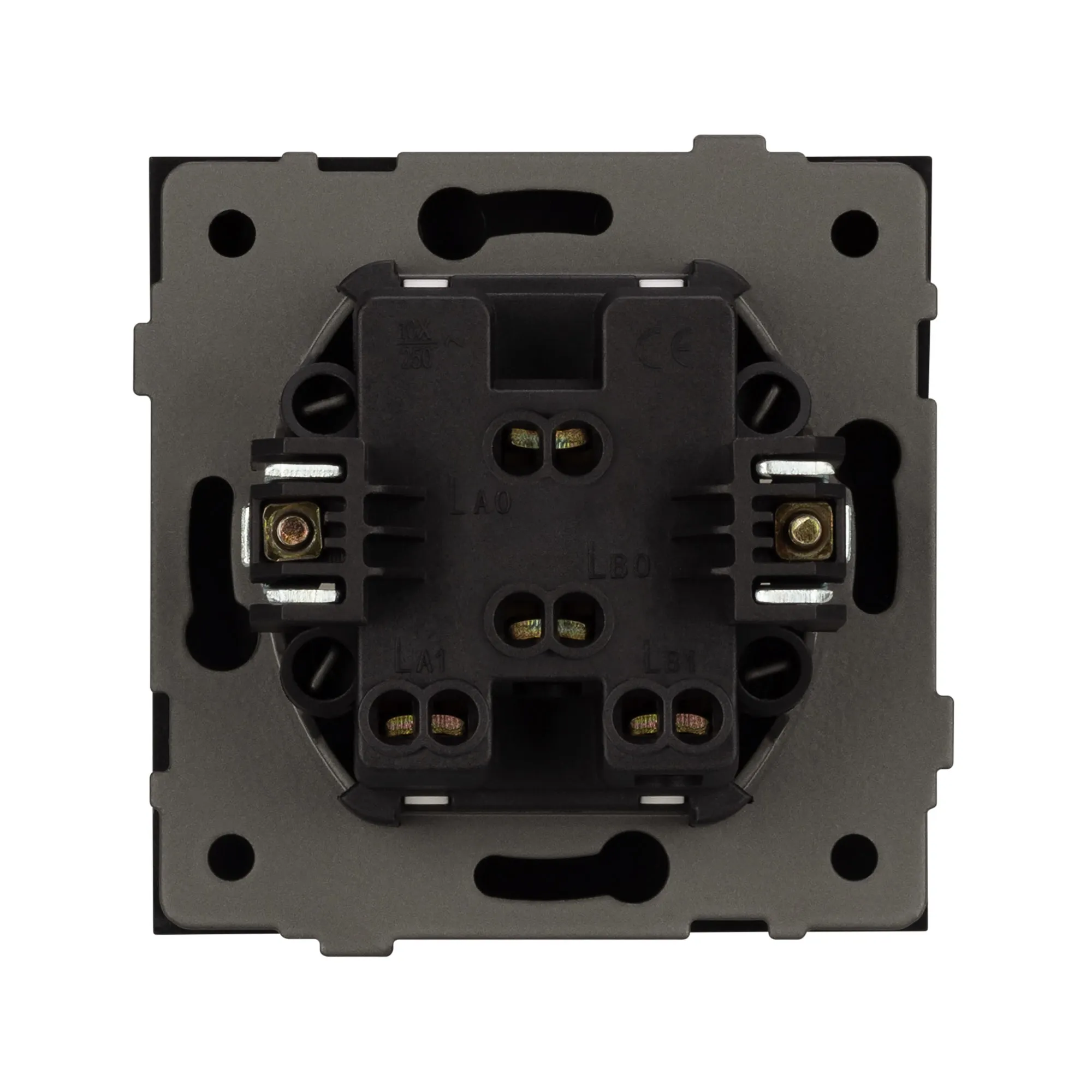 Механизм выключателя света клавишный на 1 пост 2 клавиши (непроходной). Цвет - черный, с Soft-Touch покрытием. Без фронтальной рамки. Уровень пылевлагозащиты IP20. Выключатель устанавливается в стандартный круглый подрозетник круглого сечения диаметром 60мм.