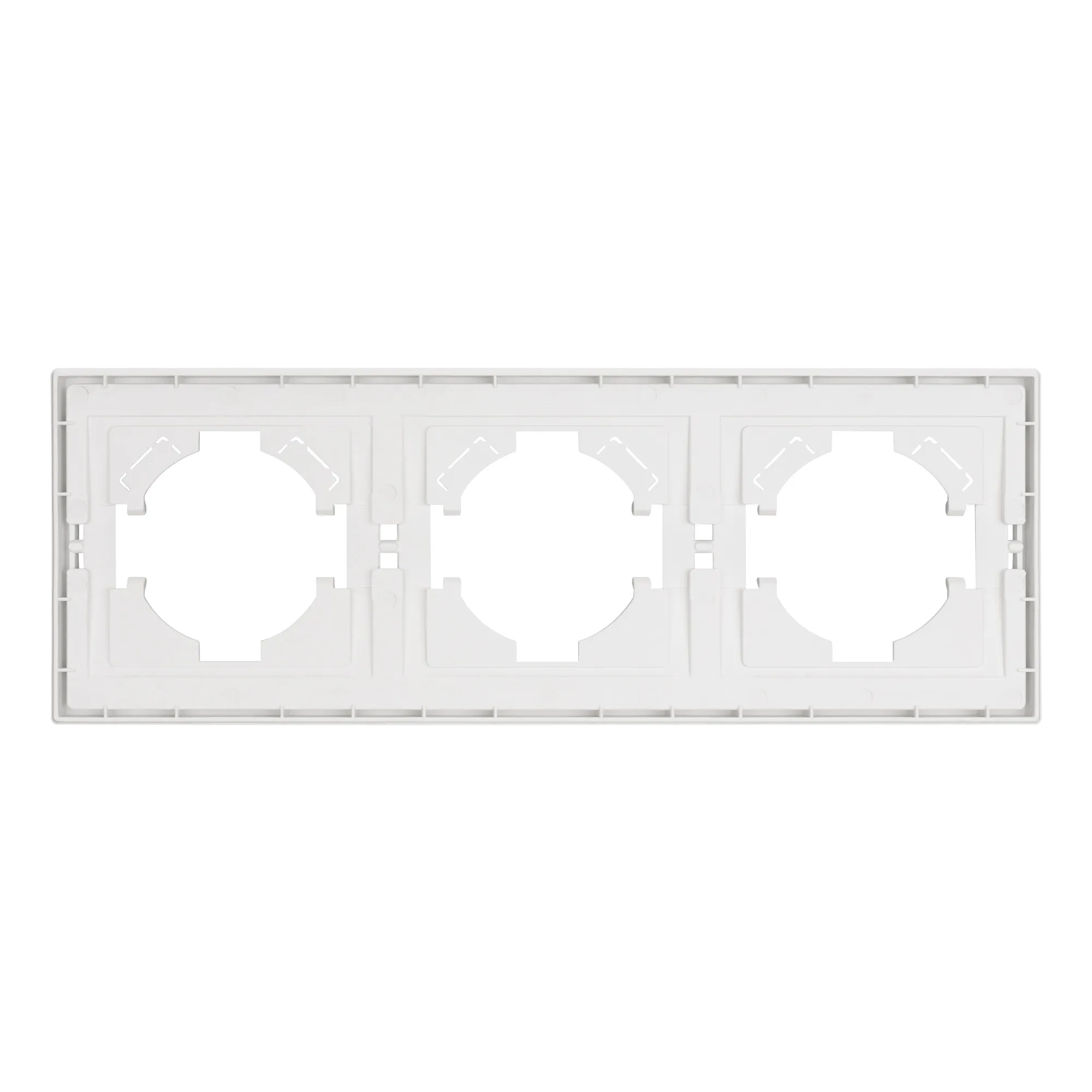 Рамка пластиковая на 3 поста, под встраиваемый механизм. Цвет - матовый белый, с Soft-Touch покрытием. Уровень герметичности IP20. Ориентация монтажа горизонтальная.