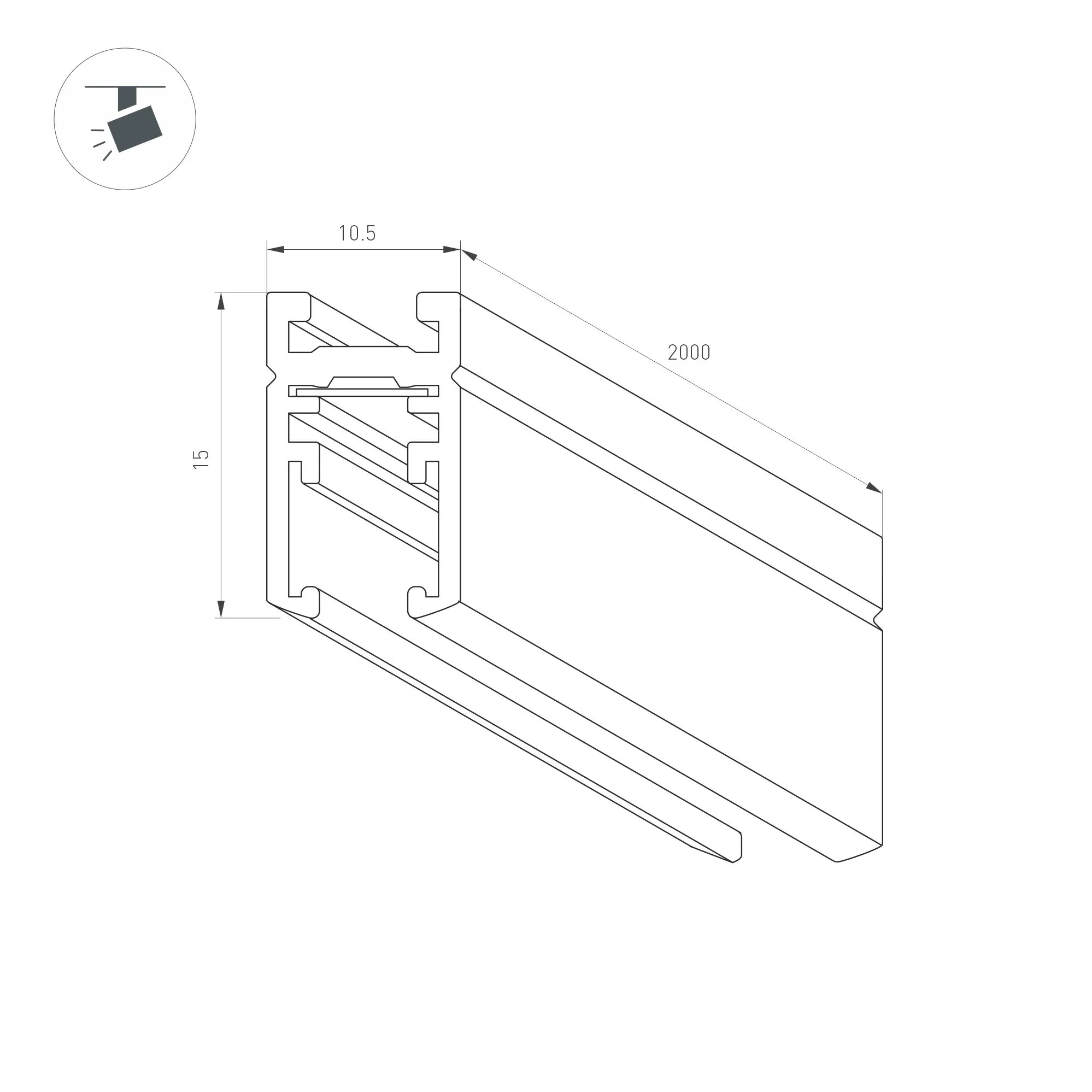 Накладной магнитный трек MAG-MICROCOSM, длина 2000мм. DC24V. Материал алюминий, цвет черный. Заглушки в комплект не входят. Размер ДxШxВ: 2000x11x15мм.