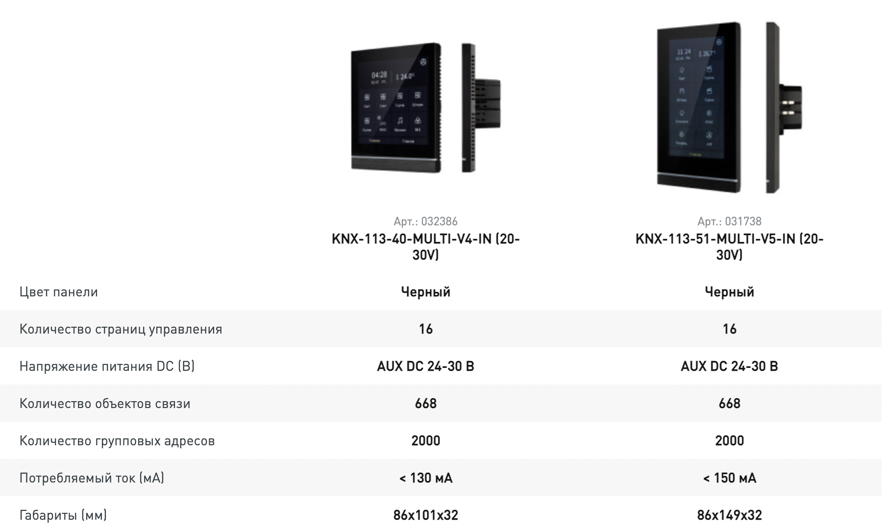 Многофункциональные кнопочные настенные панели стандарта KNX оборудованы привычными и тактильно понятными нажимными кнопками, что является решающим фактором при выборе для некоторых пользователей. Панели могут применяться для управления светом, климатом, светодиодными лентами, в том числе RGBW и MIX, шторами, отдельными группами света, включением сцен и сценариев, а также другими устройствами. Наличие моделей с разным количеством кнопок позволяет выбрать панель, максимально подходящую под конкретную задачу.